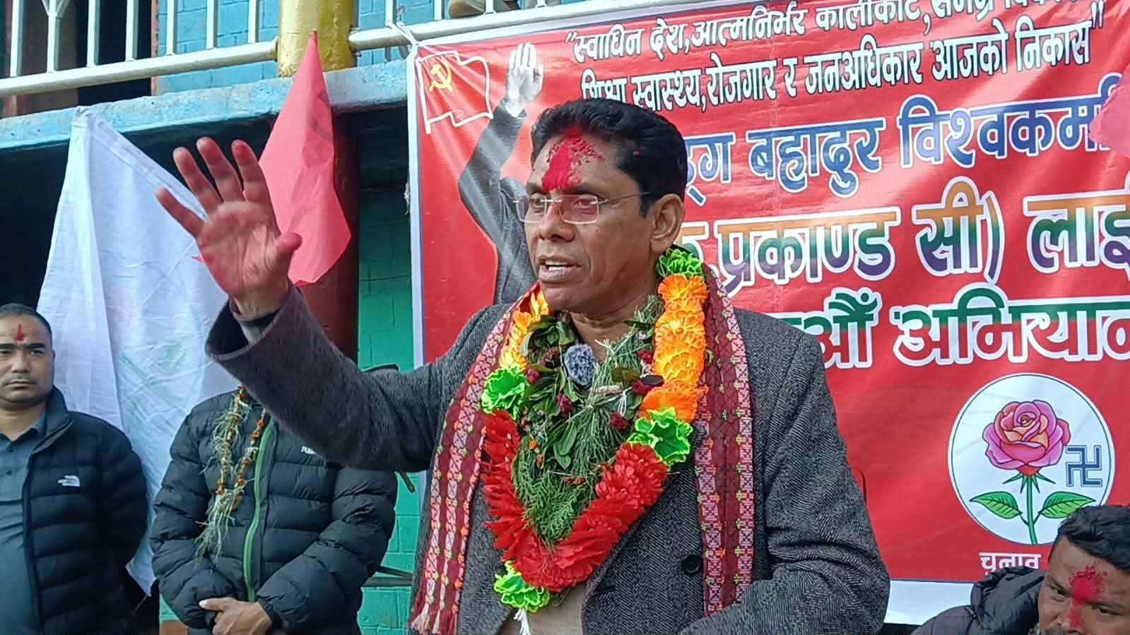 उम्मेदवार प्रकाण्डले उत्पीडित बर्ग,समुदाय, महिला, युवा,कर्मचारी,शिक्षक लगायतले आफ्नो अधिकार स्थापनाको लागि सहि नेता छान्नुपर्ने बताउनु भयो ।