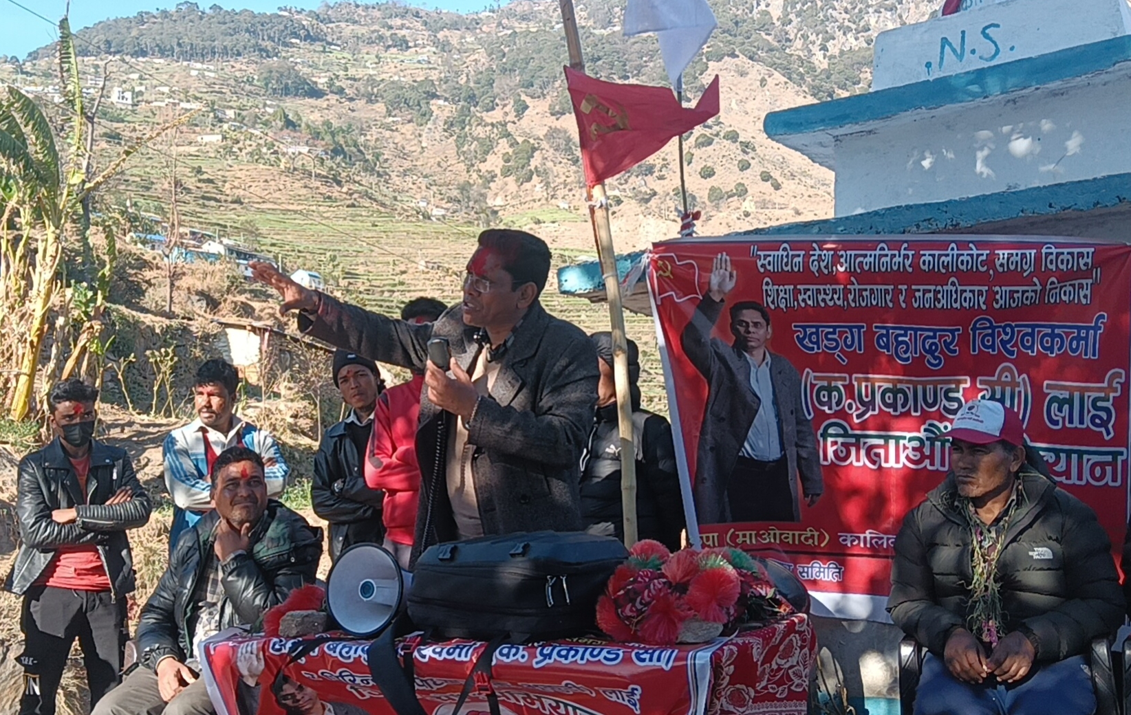 २४ माघ, कालिकोट । नेपाल कम्युनिष्ट पार्टीका प्रवक्ता तथा प्रत्यक्षतर्फका उम्मेदवार खड्ग बहादुर विश्वकर्मा (प्रकाण्ड) सीले सहिदको रगतलाई पानीको खोला बनाउनेहरुलाई छुट दिन नसकिने बताउनु भएको छ ।