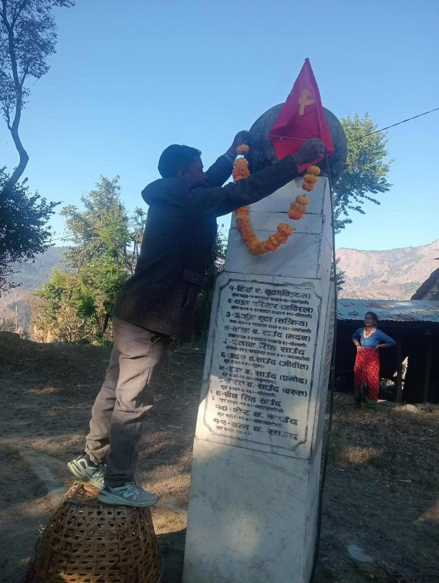३ पुस,अछाम । नेपाल कम्युनिस्ट पार्टी (माओवादी) अछामले जिल्लाको रामारोशन गाउँपालिका वडा न ६ भाटाकाटियाका सहिद परिवारसङ्ग भेटघाट गरेको छ । जिल्ला सेक्रेटरी निरकको नेतृत्वमा गएको टोलिले बुधबार स्थानीय सहिद परिवारसङ्ग भेटघाट गरेको हो ।