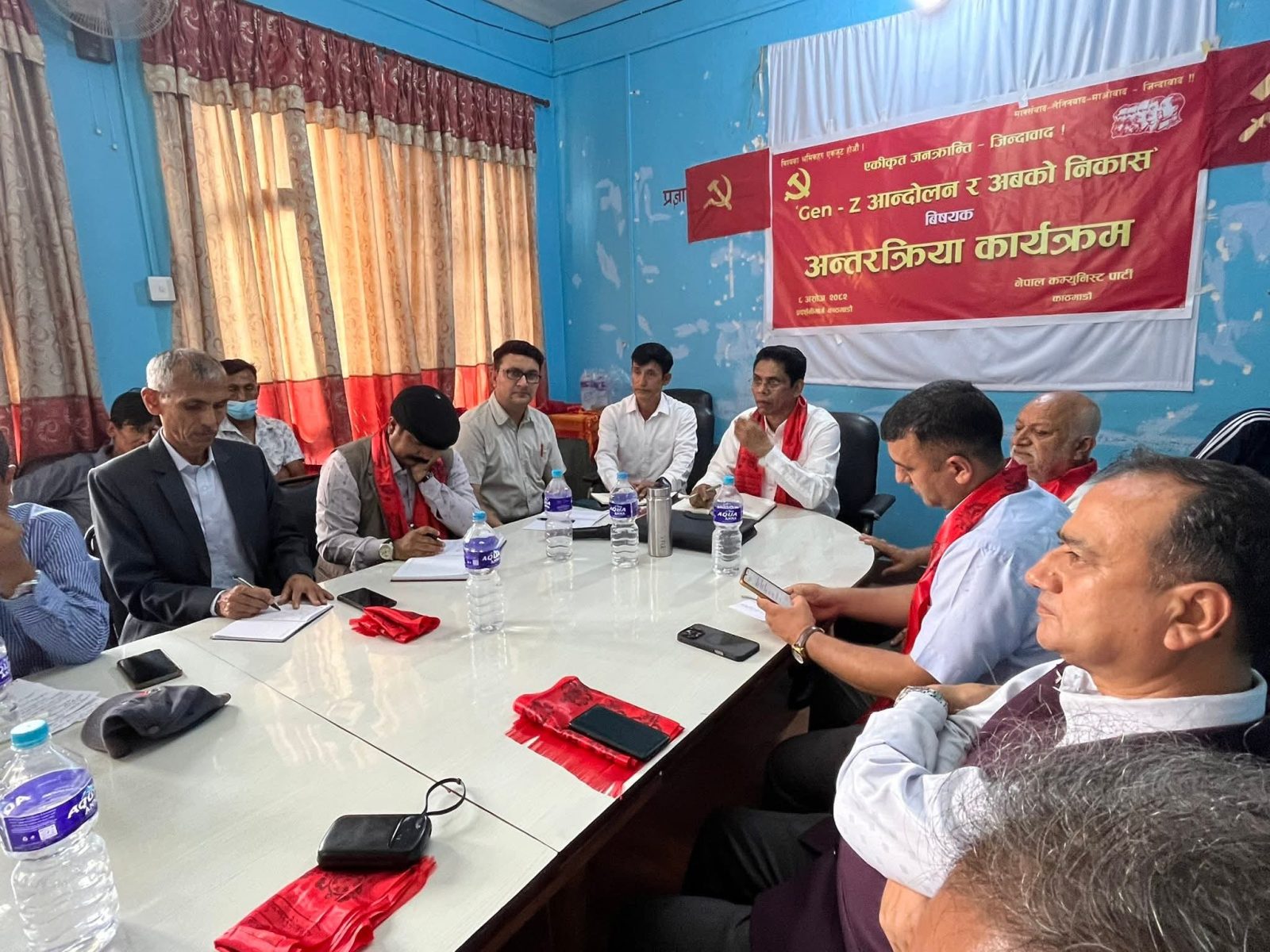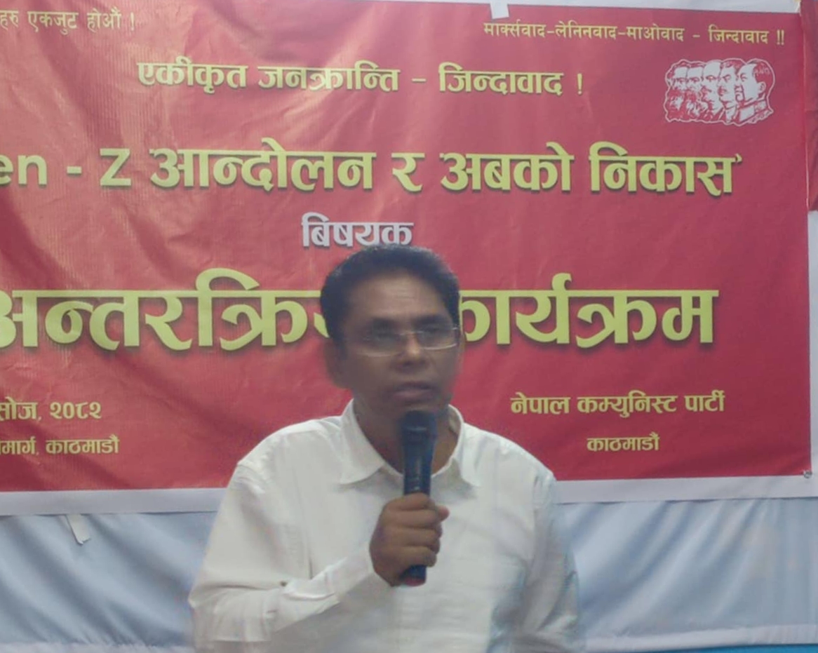 नेपाल कम्युनिस्ट पार्टी काठमाडौ जिल्ला समितिले बुधबार आयोजना गरेको ‘जेनजी बिद्रोह र राजनीतिक निकासको प्रश्न’ बिषयक अन्तर्कृयालाई सम्बोधन गर्ने क्रममा उहाँले यथास्थितिमा संकटको निकास असंभव रहेको बताउनु भयो ।