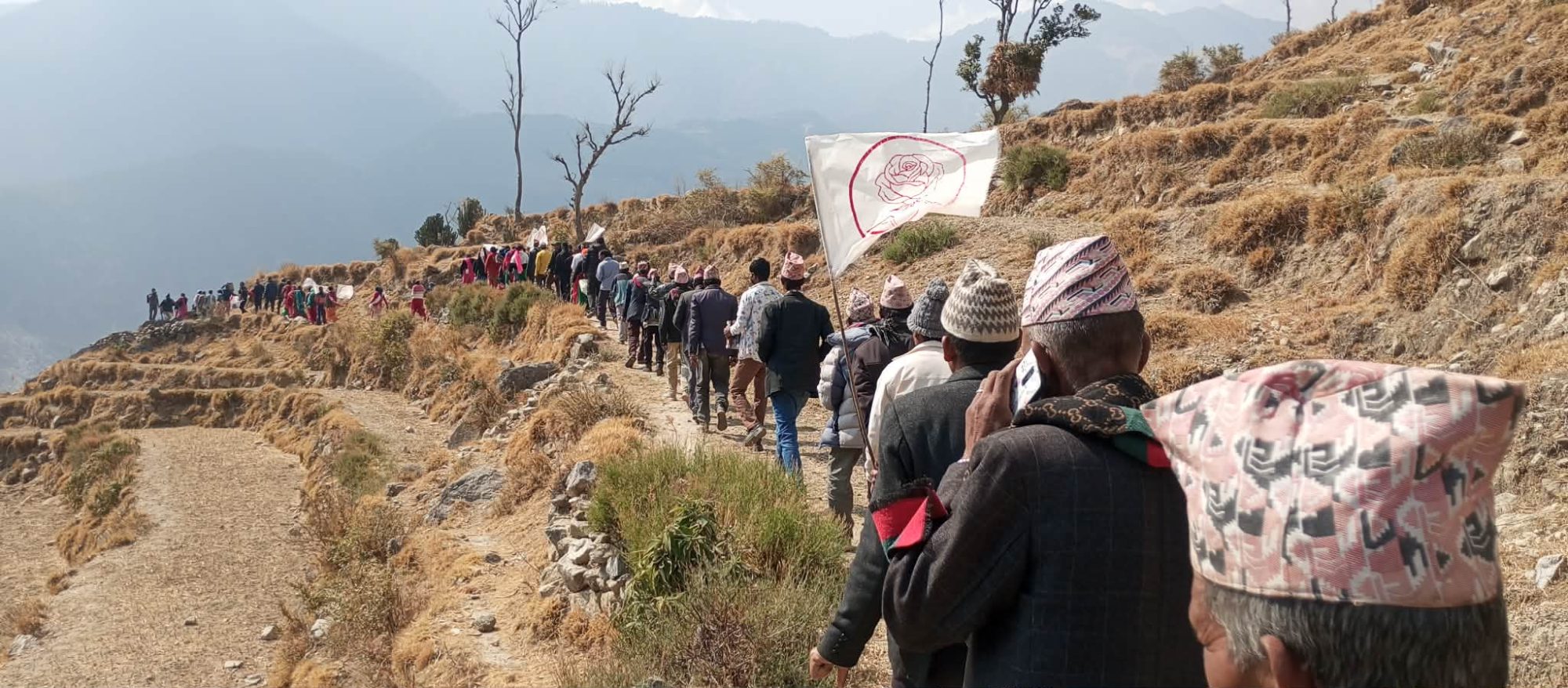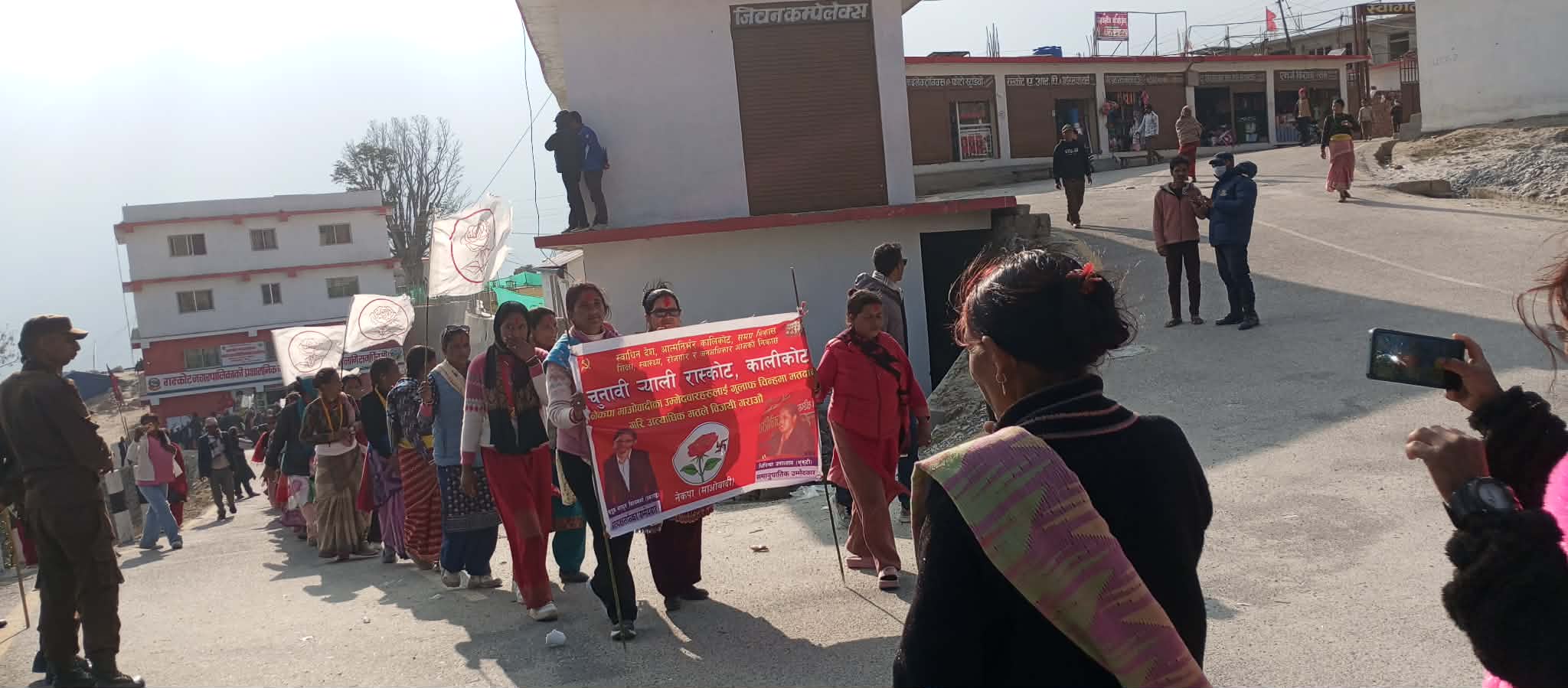 गुलाफको फुललाई सेतो झण्डामा सजाउदै हात– हातमा बोकेका रास्कोटी महिला र पुरुषहरुले भोट गुलाफमा हाली प्रकाण्डलाई जिताउँ जिताँउ, नेकपा (माओवादी) –जिन्दावाद, एमसीसीका दलाल –मुर्दावाद, वीर सहिद –लालसलाम जस्ता नाराहरु लगाएका छन ।