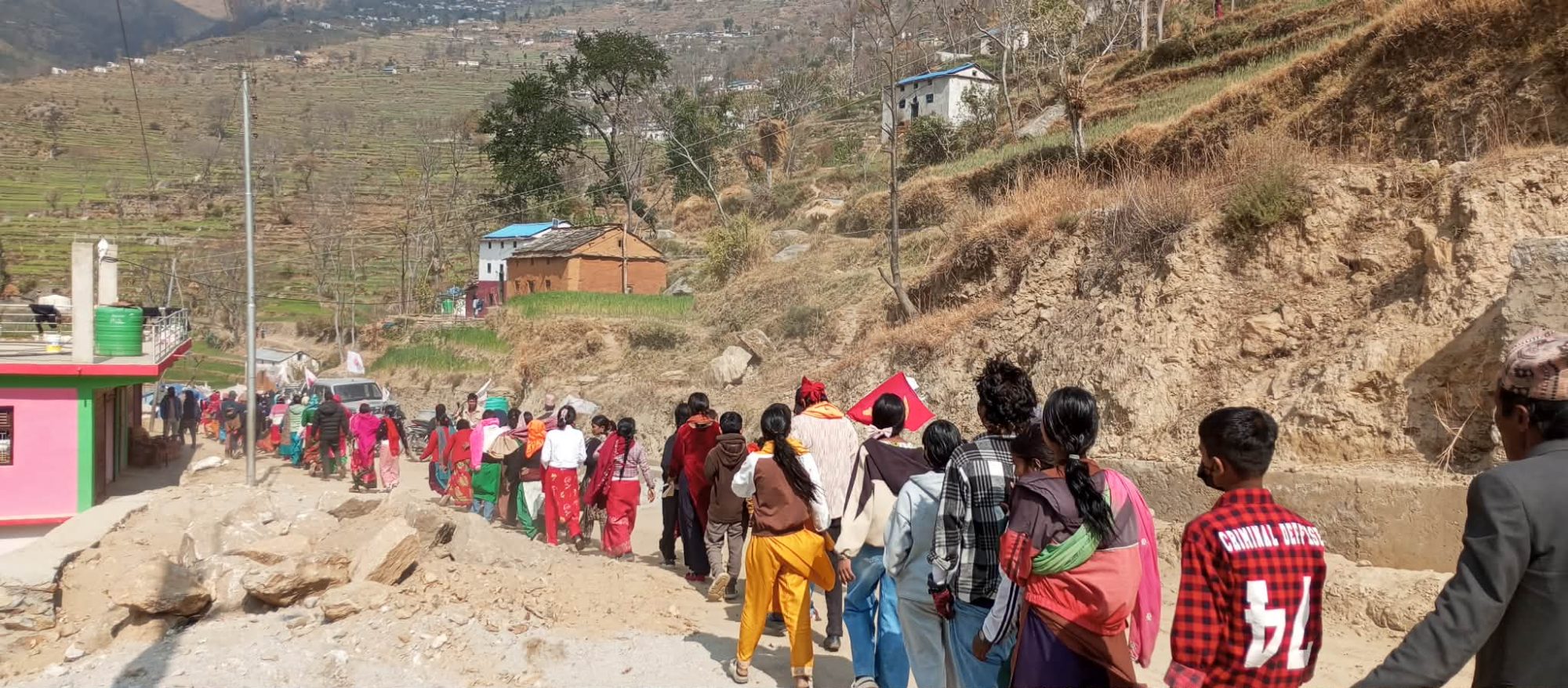 र्यालीमा सहभागीहरुले गाउँ –गाउँमा कर्णालीको देउडा समेत लगाउदा स्थानीय जनताहरु निकै आकर्षित भएका छन ।