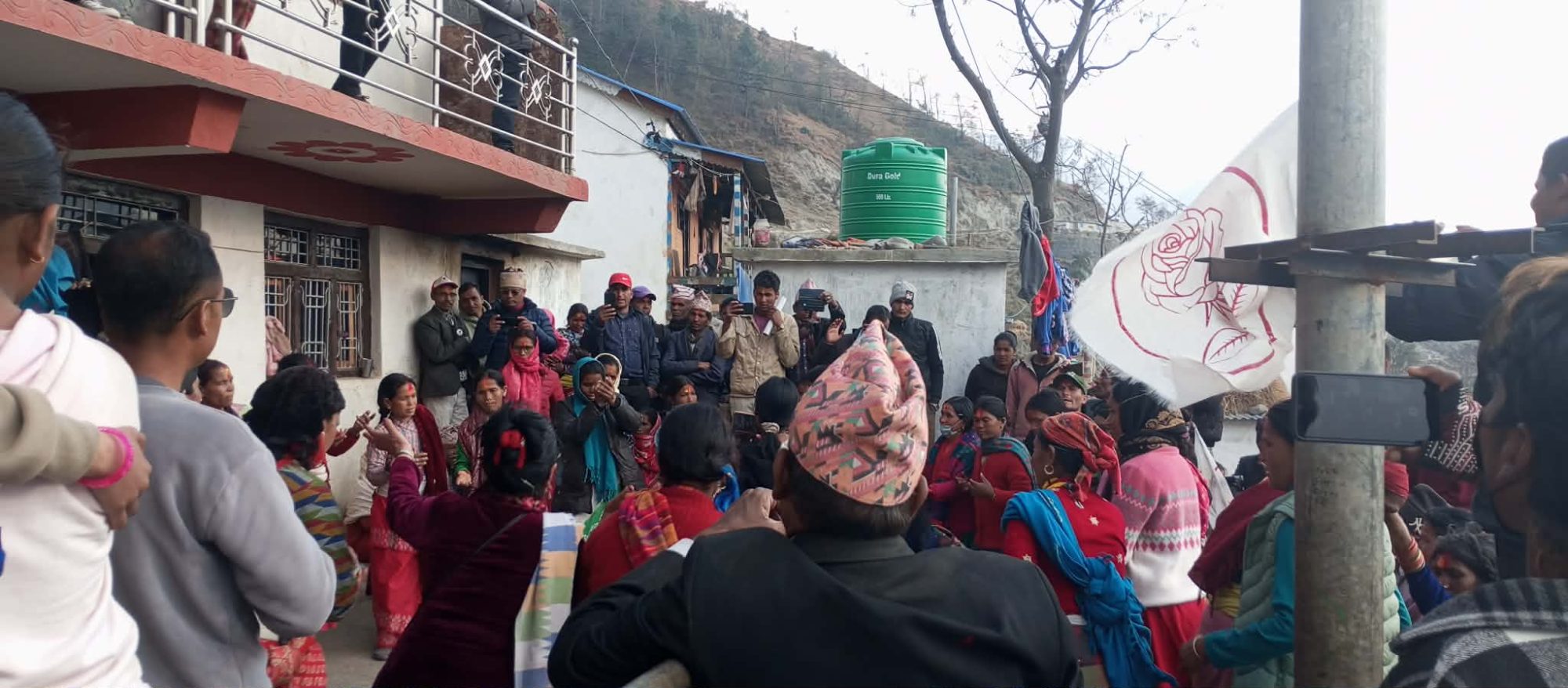 र्यालीमा भोट के मा गुलाफमा भन्दै नाच्दै गाउँदै र देउडा लगाउदै रमाईलो गर्दै रास्कोटी जनताले प्रकाण्डको पक्षमा भोट मागेका छन ।