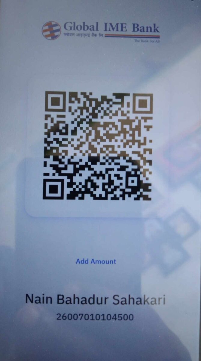 उहाँलाई सहयोग गर्न चाहाने इच्छुक दाताहरुले नैन बहादुर सहकारीको नाममा ग्लोबल आईएमई बैङकको मेहेलकुना शाखा कार्यालय सुर्खेतमा खोलिएको खाता नम्वर २६००७०१०१०४५०० र यसमा राखिएको क्यूआर कोडमा रकम जम्मा गरी सहयोग गर्न सक्नुहुनेछ ।